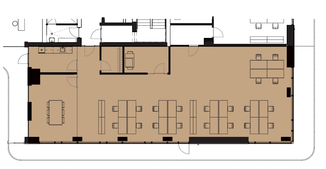 Lejemålet består af ét stort, lyst og åbent kontorareal, der giver optimale muligheder for fleksibel indretning – uanset om virksomheden ønsker et dynamisk kontorlandskab, projektzoner eller teamområder. Hertil kommer tre mindre lokaler, der kan anvendes som mødelokaler, stillerum eller individuelle kontorer.